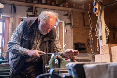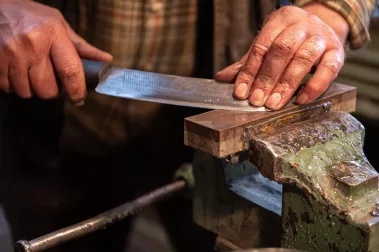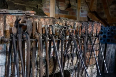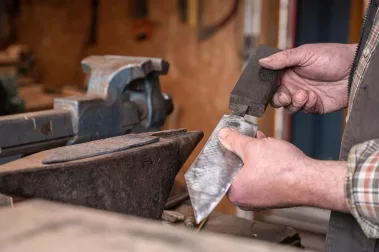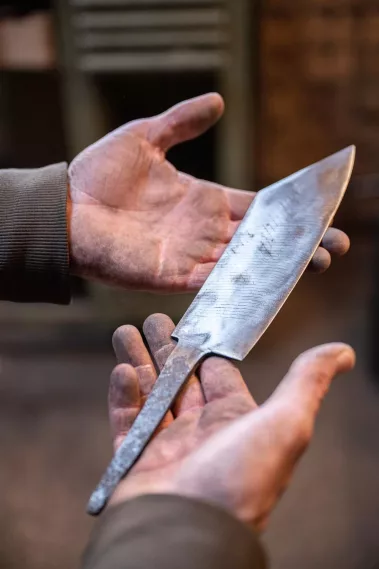 Wir hatten die Chance, im Mai Nils Holloh in Groß Flöthe zu besuchen. Dort unterhält er seit vielen Jahren eine Schmiede und eine kleine Galerie. Als gelernter Messermacher hatte er sich mit der Zeit auf die Herstellung von historischen Objekten für Museen spezialisiert. Heute bietet er verschieden Schmiedekurse an, unter anderem einen Messerschmiedekurs. Unter Anleitung wird z. B. aus einer alten Hufraspel ein Messer. Interessant!
