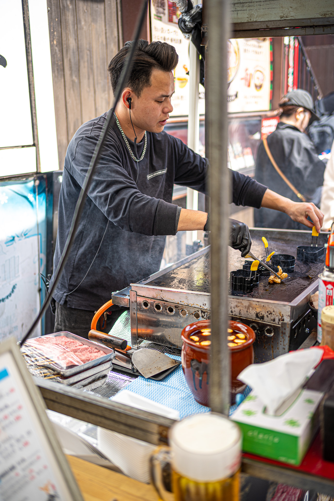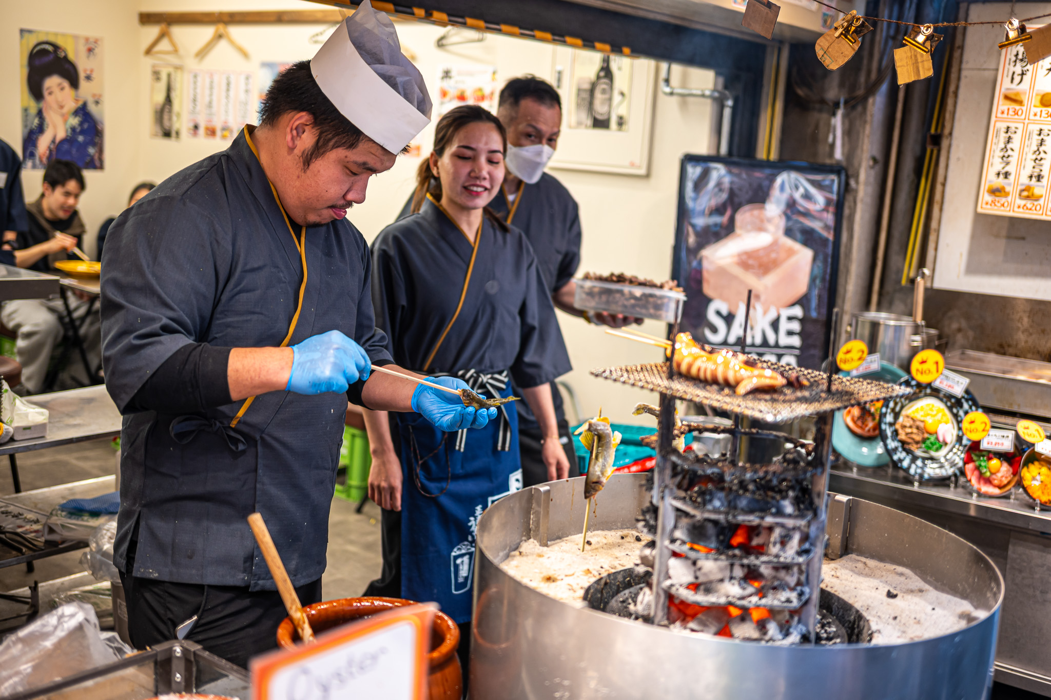 Mitten im morgendlichen Trubel eines japanischen Streetfood-Marktes: Der Duft von gegrilltem Fisch liegt in der Luft, dampfende Spieße reihen sich wie Kunstwerke auf, und jedes Gesicht hinter dem Tresen erzählt eine Geschichte.
